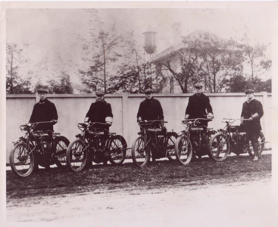 Chuck Rudy, Jr: I am enjoying the motorcycle postings, though personally the present day credit card bikers who just like to make noise annoy me to tears, of the early days. The “Fearless” book is an informative albeit short, as in <100 pages, read and not done by wordsmiths but they got the message across. Here is a cropped photo from 1908 as Robertson finished showing two motorbikes. The one to the right sure appears to be an Indian, the other is hard to tell. But enjoy and post if you wish.
