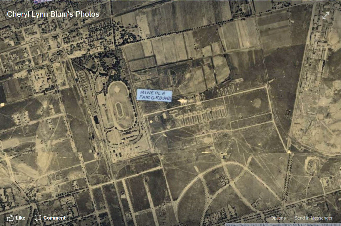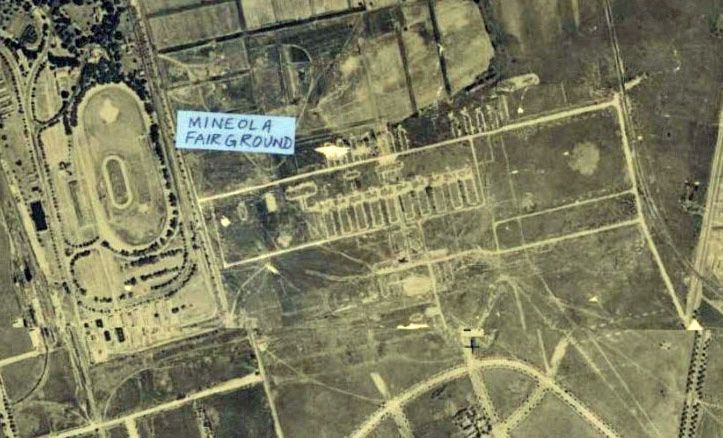 Bill Bellmer: Of particular interest to me is the route of the rail spur from the Mineola-Hempstead branch, which can be seen as a dark line crossing the road from Osborne Rd. to the complex. All this was built in 1918 and was gone by probably 1921.