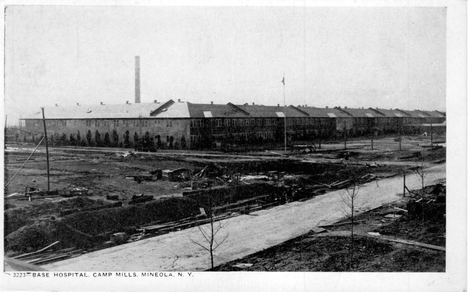 The base hospital at Camp Mills was situated in Nassau County, Long Island, N. Y., about 10 miles from the eastern boundary of Greater New York, and 1 mile, to the east, from Mineola.