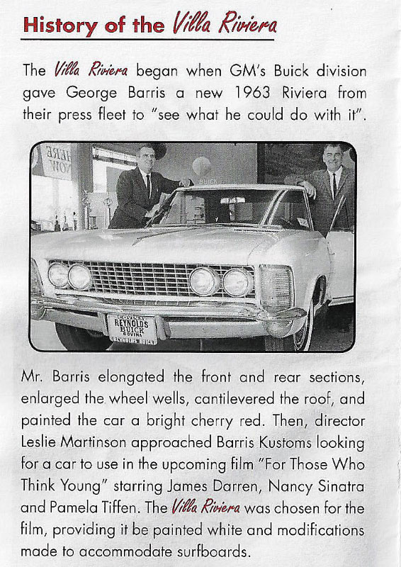 The car is 1963 Buick Barris Kustom Villa Riviera