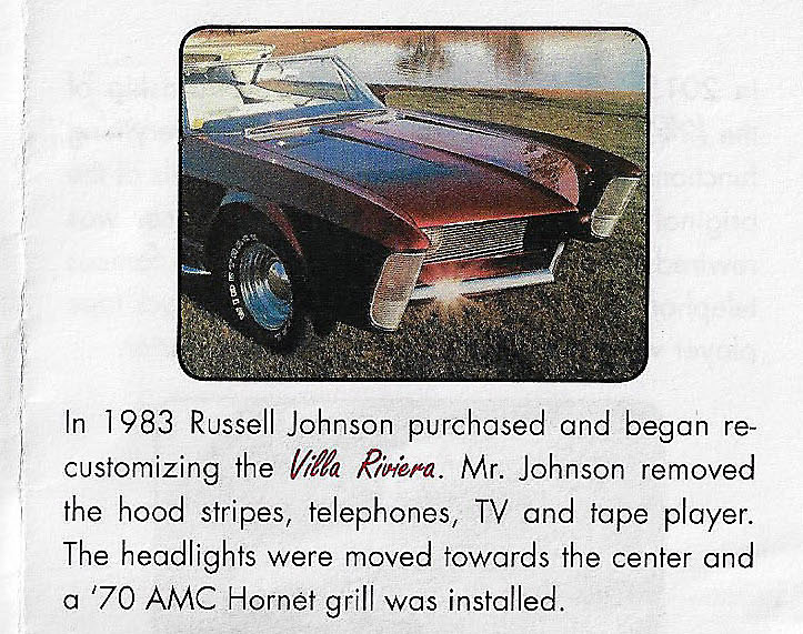 The car was nicknamed the “Villa Riviera.” It began life as a 1963 Buick Riviera, and was customized by George Barris. It starred in a movie called “For Those Who Think Young,” starring James Darren, Pamela Tiffin, Nancy Sinatra, and Bob Denver. I admit to feeding a few keywords into a search engine to get this one.
