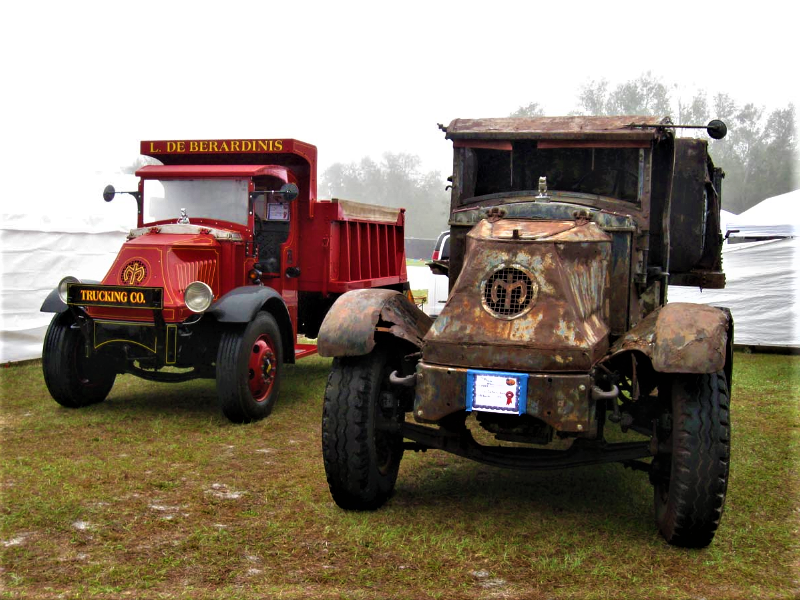 *ID manufacturer, model and year of truck: Mack truck…1918? I read that the logo seen ( which looks very cool ) was discontinued after 1920. They should still use that stylish M instead of plain old Mack.