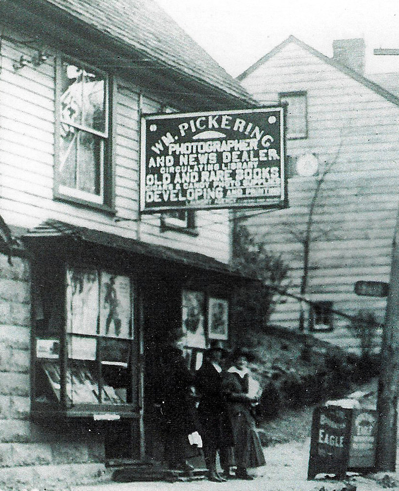 A photo by William Pickering taken in front of his store during World War I.
