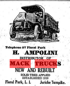 Tough mystery, I found some answers - feeling lucky patching the remaining holes. Early 1920s, a Mack AC Bulldog truck with rear-axle chain drive delivering newspapers and used books to the W.H. Pickering general store, at the corner of East Broadway and Papermill Road in Roslyn, looking north. Self-taught photographer, Pickering photographed Roslyn parades and early Long Island races including Vanderbilt Cup Races. His extensive library of photographs are still treasured today and stored at the Bryant library located at the same corner in Roslyn. His house was next to the store and I don’t believe either one survived the test of time.