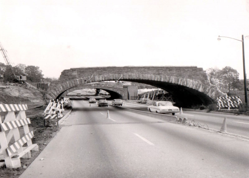 Strange that though the Motor Parkway bridge is “being taken down in the ‘60s,” there is a 50 year old car parked on the shoulder