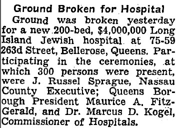 Long Island Jewish Hospital is under construction, top left