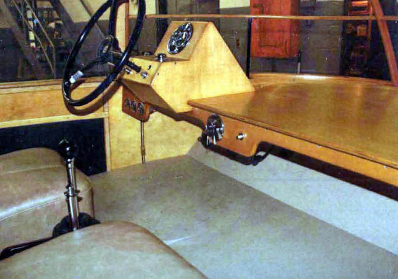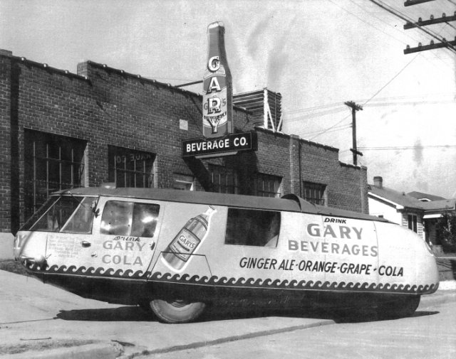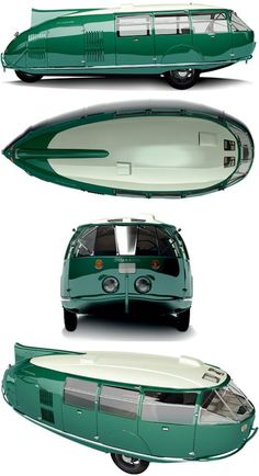 11 seater, Ford flathead V8, 85hp, 90mph, 30mpg, rear mount engine, front wheel drive, periscope in the rear.