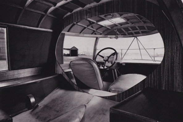 That’s a 1933 “DYMAXION” 4D Transport designed by Richard Buckminster Fuller, who was also known as an architect, inventor, and author. He was also famous for developing the design of the Geodesic Dome. I managed to discover 2 links to Vanderbilt Cup Races: first- Fuller rented the former Locomobile factory in Bridgeport, CT for building the “DYMAXION”, the same factory that produced “Old Number 16”, the first American car to win a Vanderbilt Cup Race in 1908; second- the co-designer of the “DYMAXION” was William Starling Burgess, who also designed William K. Vanderbilt, Jr.‘s brother Harold Stirling Vanderbilt’s two Americas Cup winning yachts, “Enterprise” and “Ranger”. Interestingly, Fuller never thought of his vehicle as a car. He called it “the land-taxiing phase of a wingless, twin-orientable, jet-stilts flying device”.