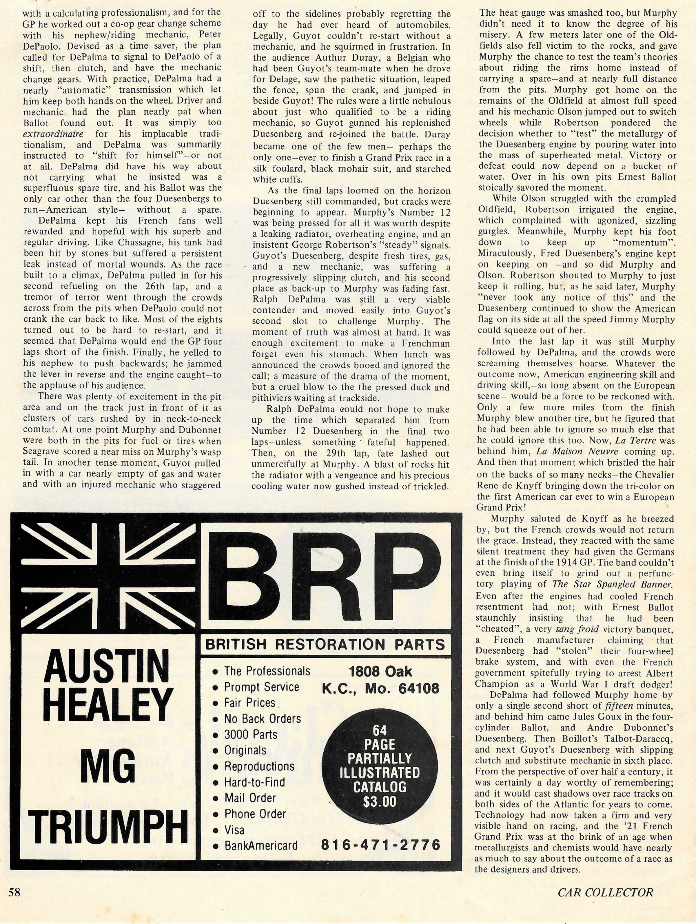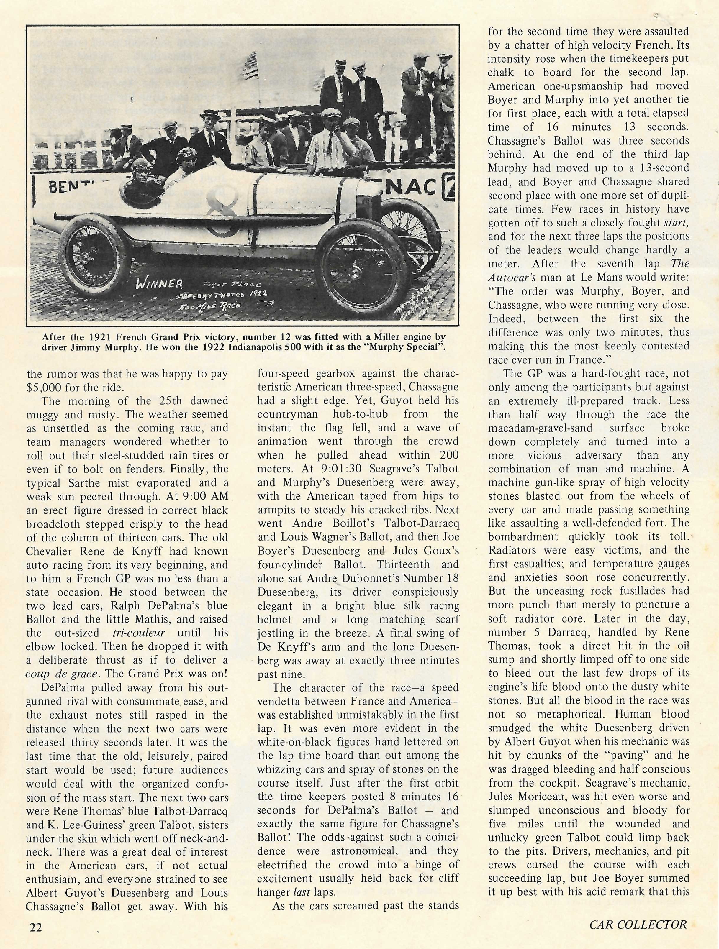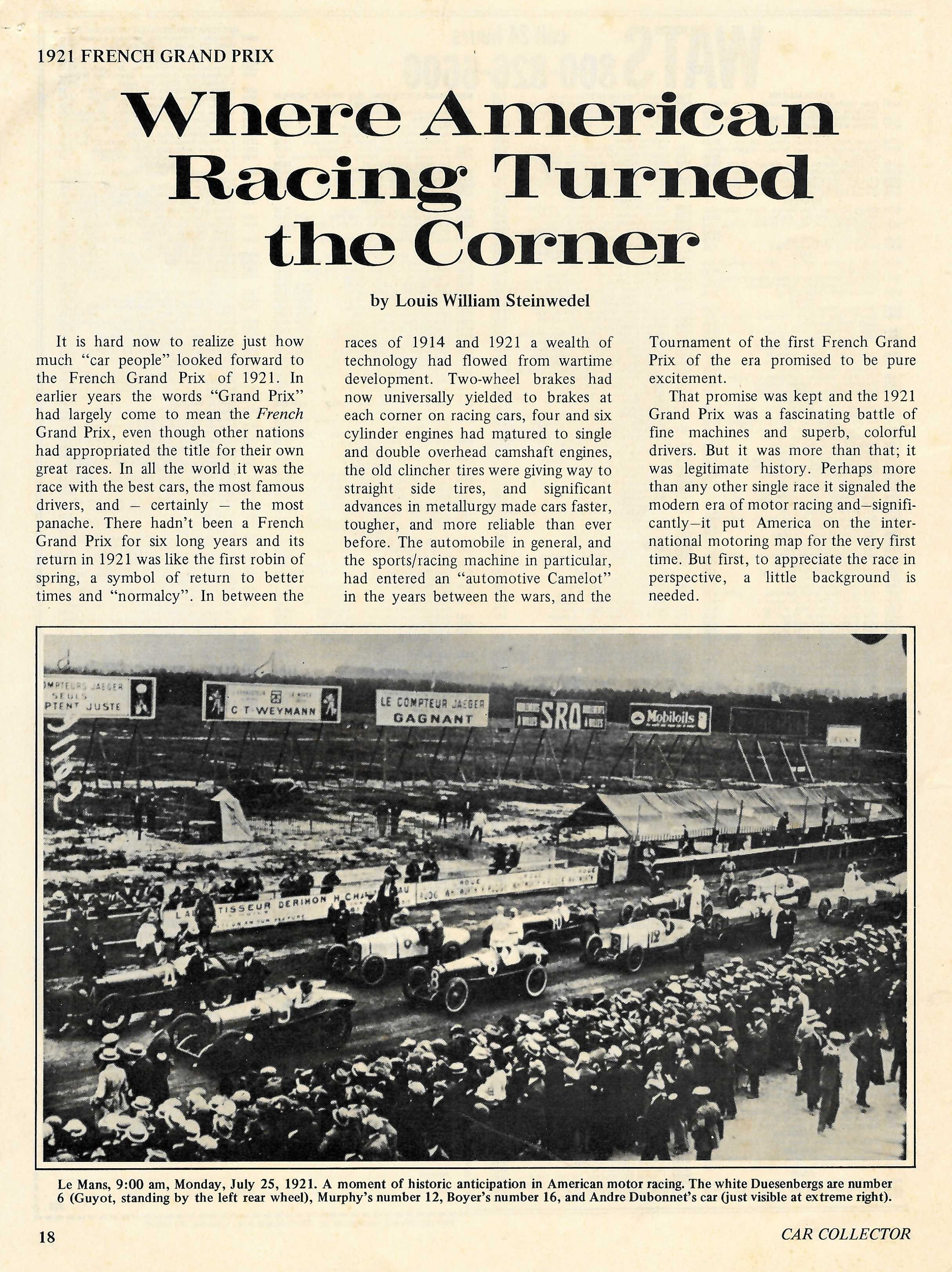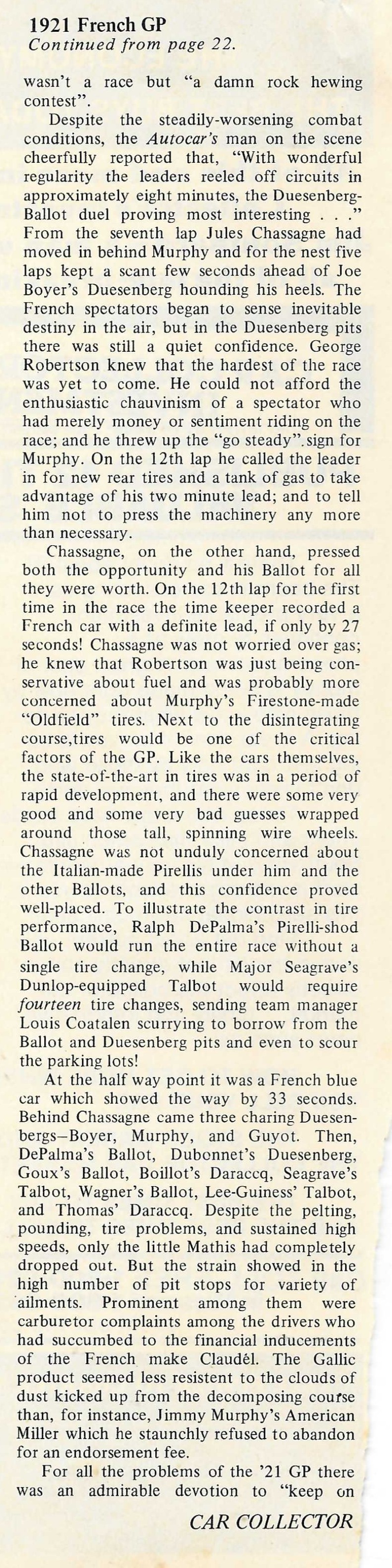 As with all things racing, Peter Helck had a fairly extensive file in his archives about the 1921 French Grand Prix including this in depth article in the December, 1979 issue of Car Collector magazine.