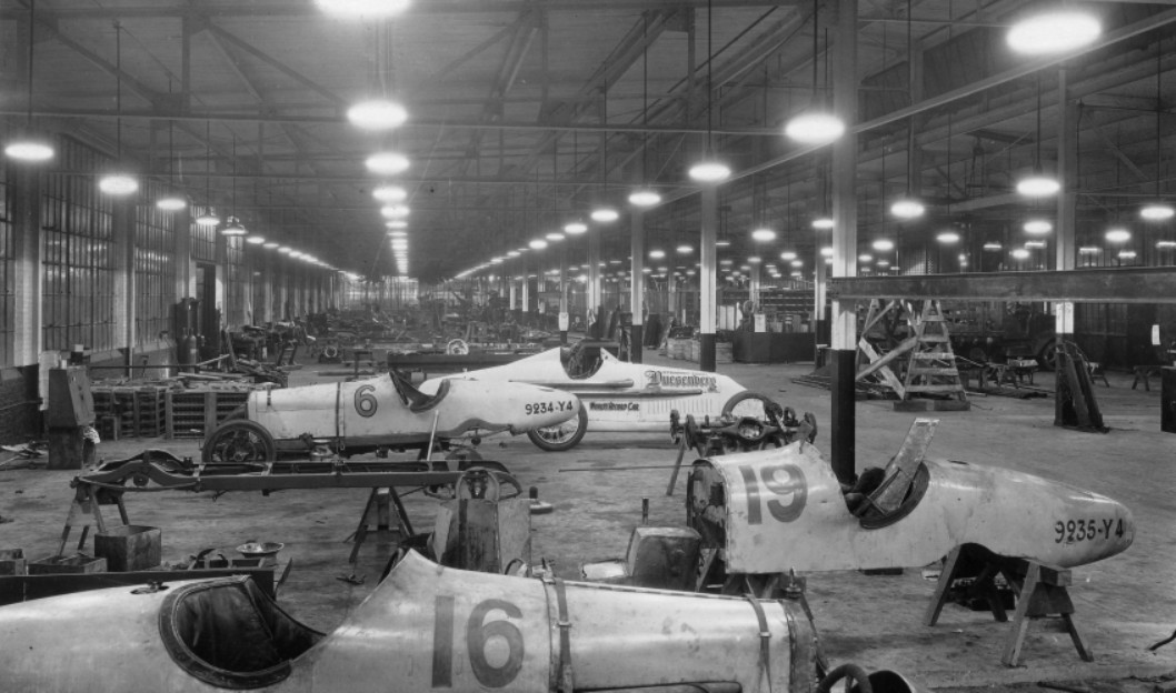 The Duesenberg factory. In 1920, emboldened by success in manufacturing marine and racing engines, brothers Frederick and August Duesenberg relocated their New Jersey manufacturing facility to Indianapolis, Indiana. Duesenberg Automobile and Motors Company operated on 17 acres at 1511 West Washington Street from 1920 to 1937.