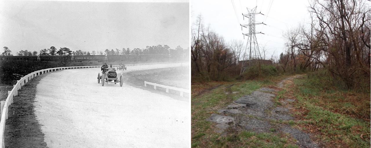 Oct 10, 1908, on the high-banked Dead Man’s Curve looking south in Bethpage. It’s still there!