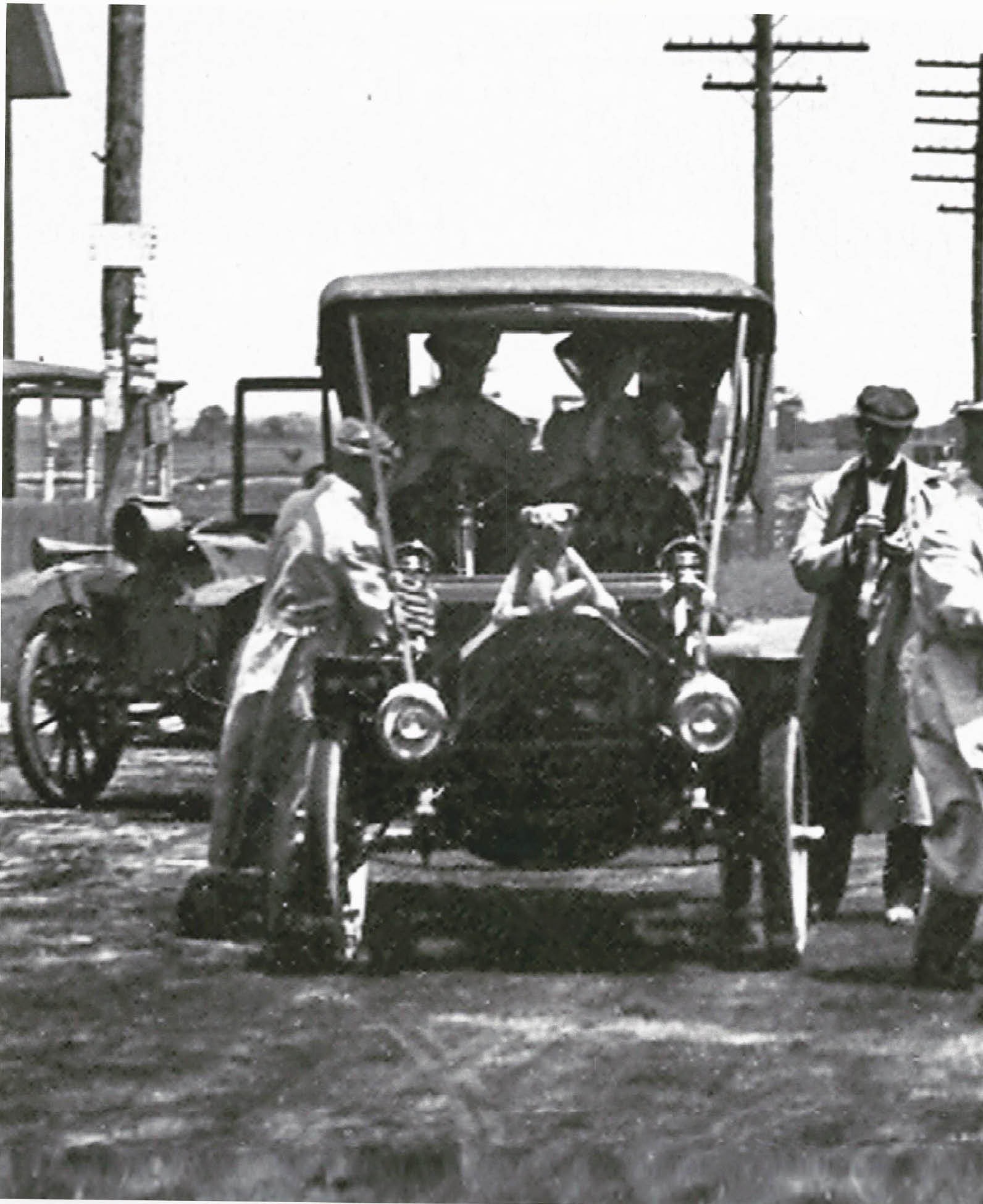 According to the Garden City Archives, these cars were on their way to take a tour of the proposed course for the 1908 Vanderbilt Cup Race, including sections of the Long Island Motor Parkway under construction.