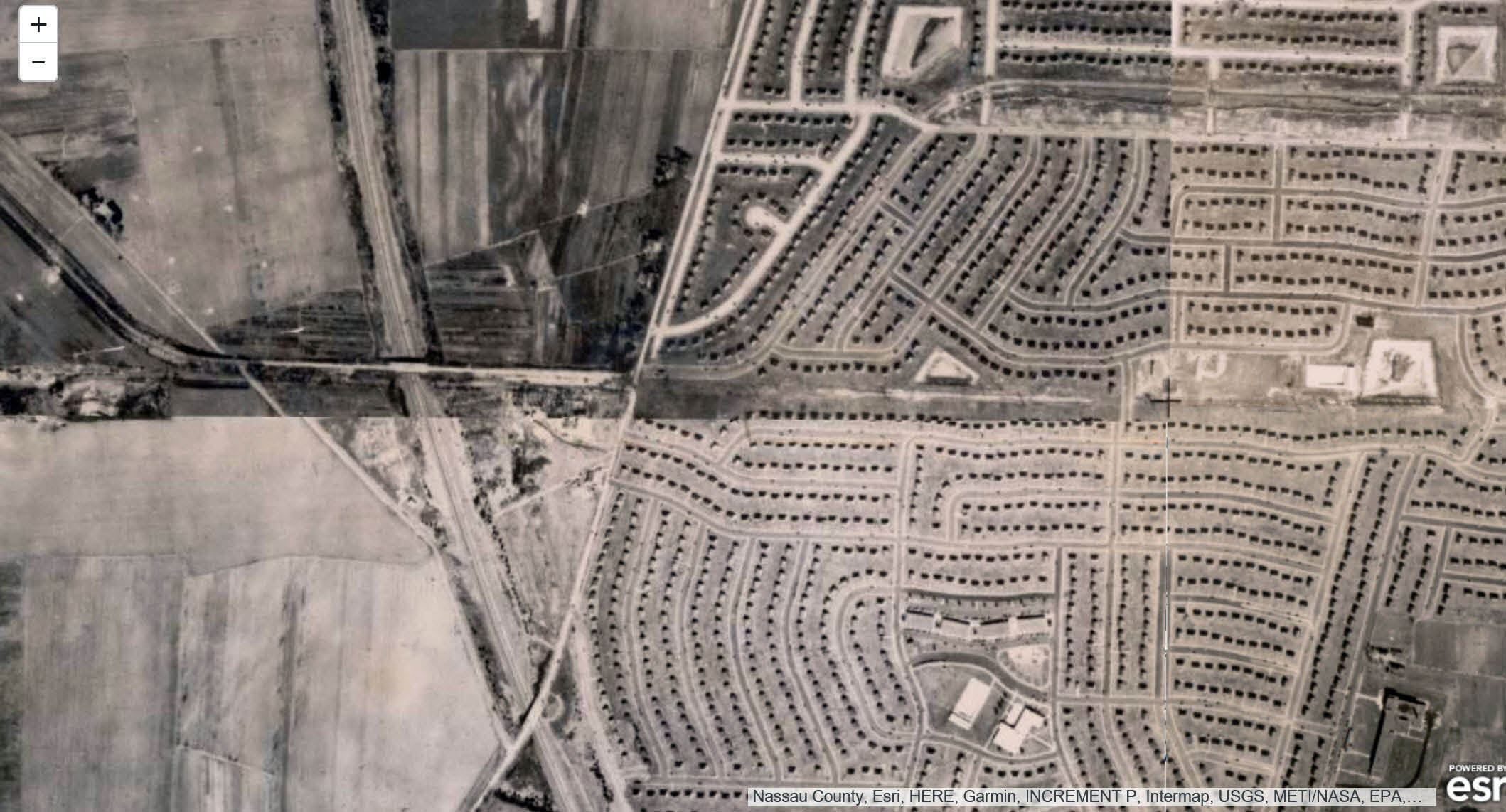 Levittown was built between 1947 and 1951. We can see a Levitt west of