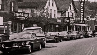 Mystery Foto #17….Photographer standing on Old Northern Boulevard looking north east, clock tower somewhere behind him. As for the cars, there are at least two ‘61 Oldsmobile 98’s, the first car on the left being one of them. There is an early 50’s Chevy back in front of Anchorage Bar. The buildings, left to right ,are Roslyn Mill Tea House, Roslyn Bait and Tackle (maybe), Now a real estate office. Next building, Anchorage Bar and Grill.