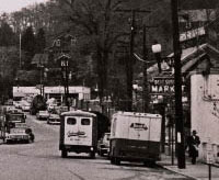 pic 3 is looking east at burt russells with a delivery truck a divco truck looks like a entermants lettering on the back