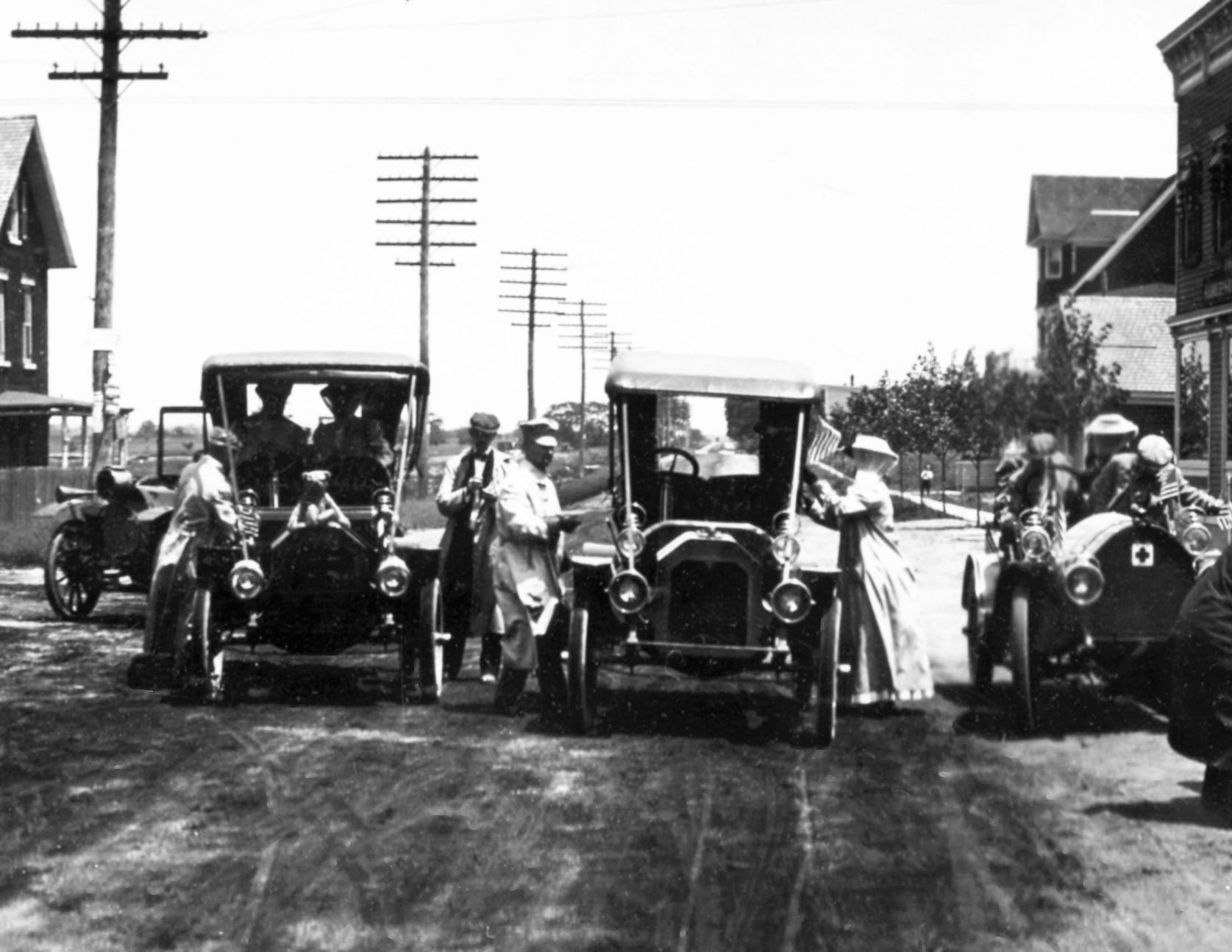 According to the Garden City Archives, these cars were on their way to take a tour of the proposed course for the 1908 Vanderbilt Cup Race, including sections of the Long Island Motor Parkway under construction.