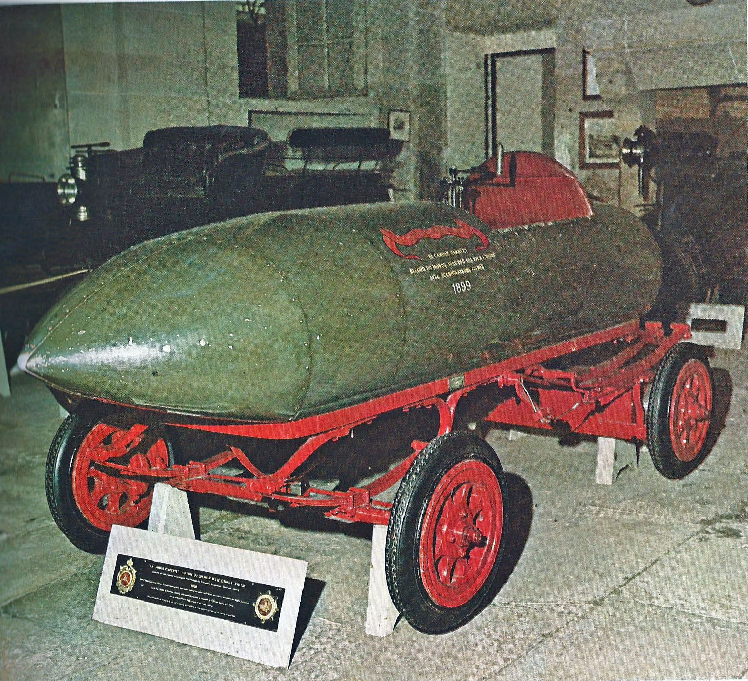 What is the historical significance of this racer? 1st vehicle to exceed 100 kph. Reached a speed of 105 kph (65.8 mph) in 1899.