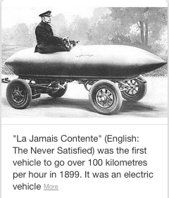 it is the first electric vehicle to exceed 100 KPH [62 MPH] 1899