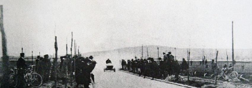 From December 1898 until May 1899 the Comte de Chasseloup-Laubat and Camille Jenatzy fought a battle over the world speed record. The scene of this battle was a straight road stretch near Achères, a village just west of Paris. The first speed record for cars ever was set by Chasseloup-Laubat on December 18, 1898 with a rather conventional looking Jeantaud reaching almost 63 kph. Also Jenatzy would drive a conventional looking electric Kriéger during his first attempts. Early March 1899 Chasseloup-Laubat attained 94 kph with a streamlined Jeantaud. Jenatzy was not impressed and stated that he would attain 120 kph within a month. Maybe not completely that, but on April 29, 1899 he would reach over 105 kph with his electric ‘La Jamais Contente’, a streamlined torpedo-like car with aluminum body, designed and built by the engineer Auscher of the coachbuilding firm Rothschild.