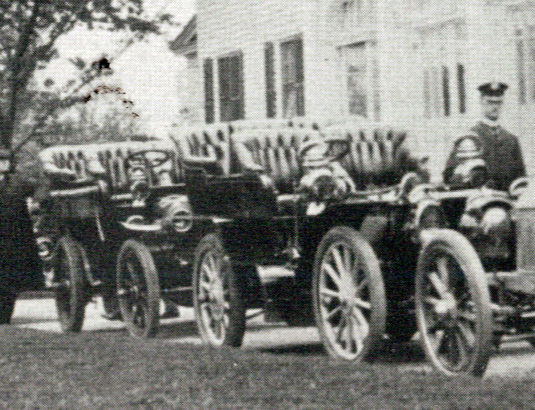The location of the meeting was at William K. Vanderbilt"s Deepdale mansion. The time of photo I believe is between 1904 and 1908. The meeting was held due to the Vanderbilt Cup races or the cup race on the new parkway. The race car is that of Willie K’s 1903/04 90 HP Mercedes. The car was raced at Ormond Beach, Florida by Willie K on 1/27/1904 where he received the speed record at the time. The vehicle on the right of the Mercedes was most likely Willie K’s support /tow vehicle due to the #1 painted on the right side. This is the same number of his Mercedes when he raced at Ormond.