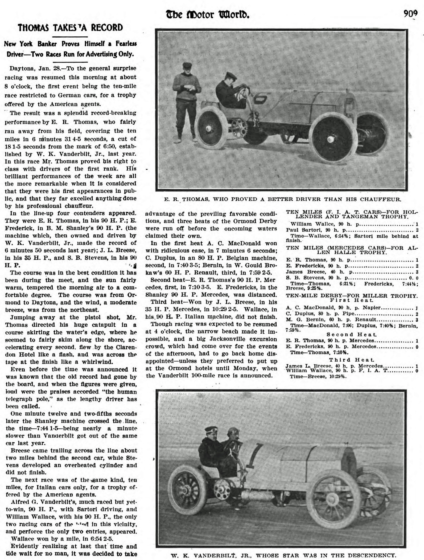 Willie raced his Mercedes in the 1905 Ormand Beach as #1.