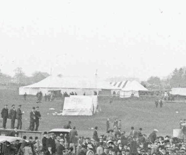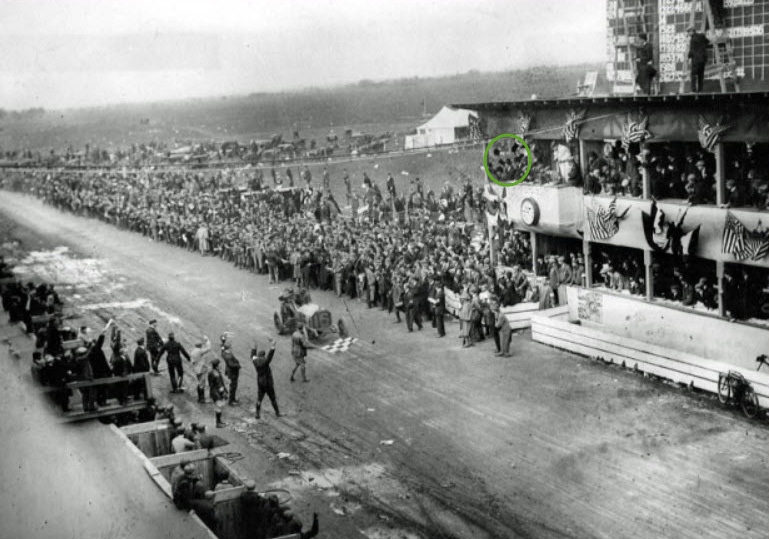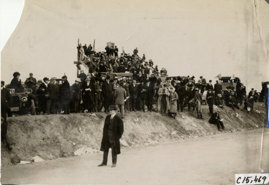 Specators to the wet of the official's stand/press box. Note the small grandstand at the upper right corner.