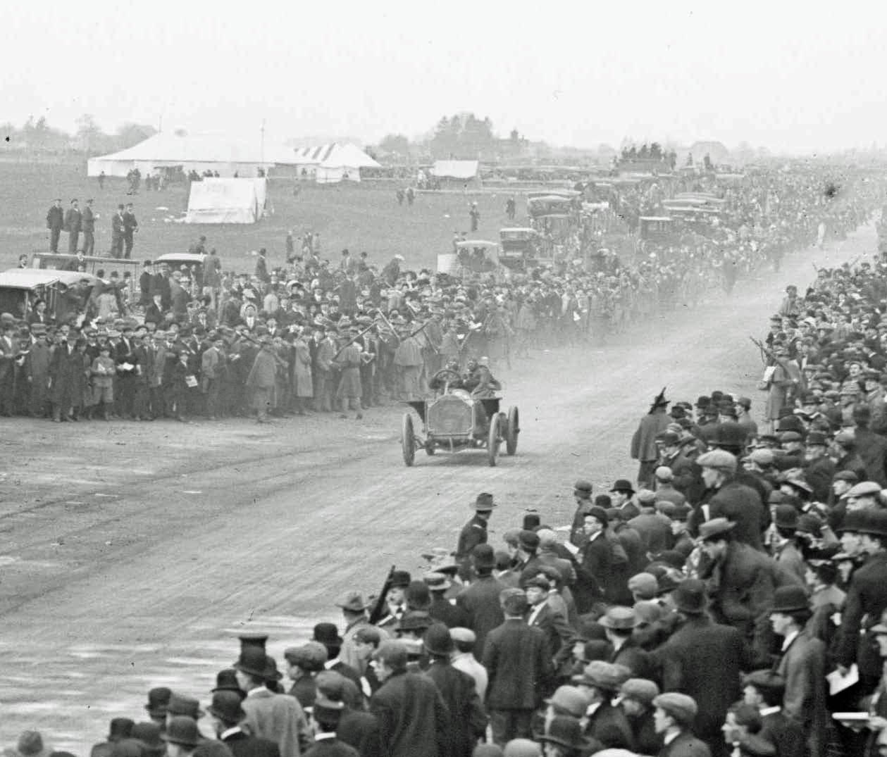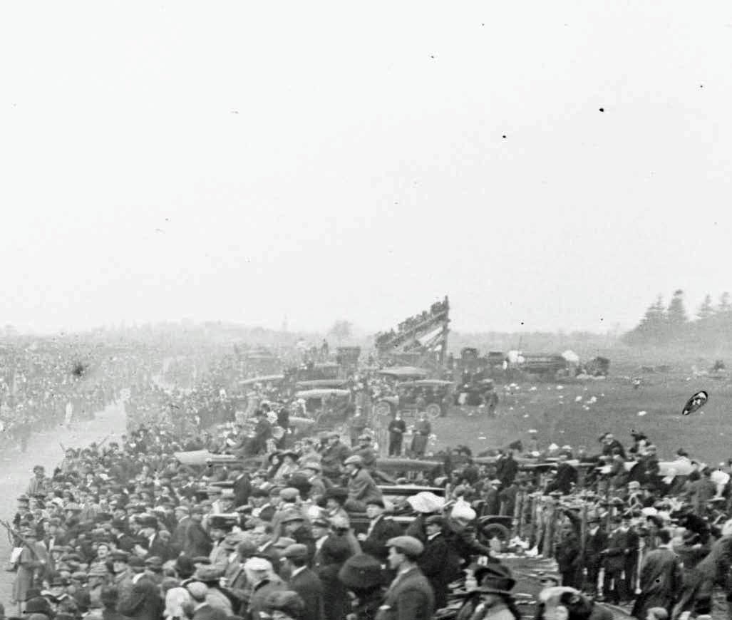 That’s the grandstands for the 1908 Vanderbilt Cup Race on Oct. 24, 1908.