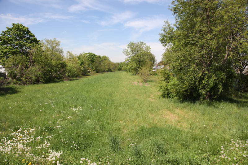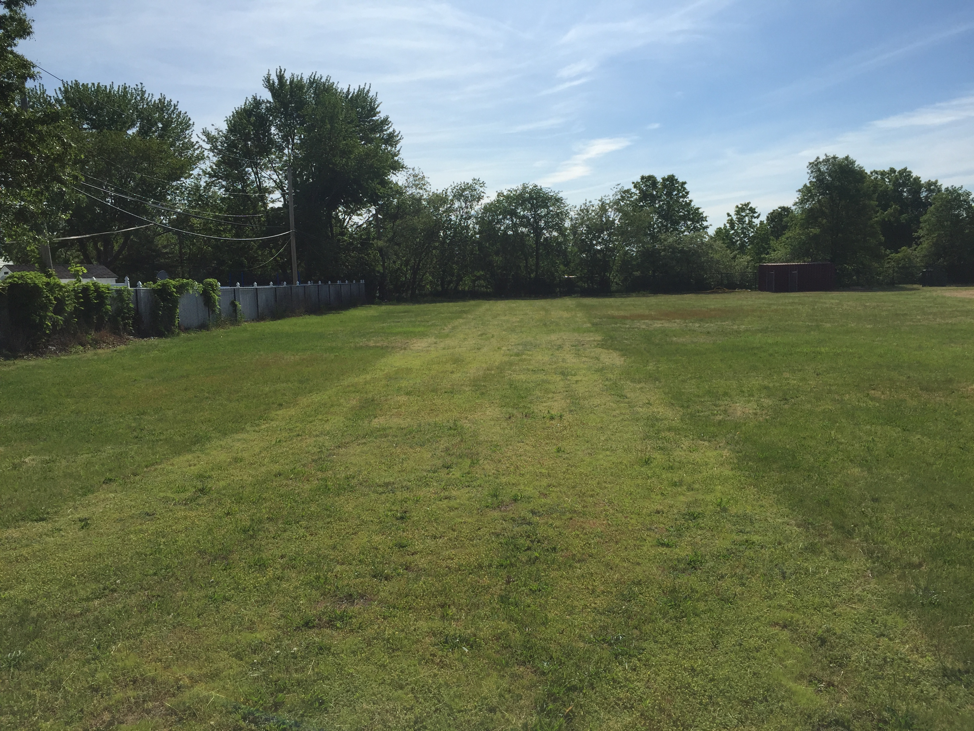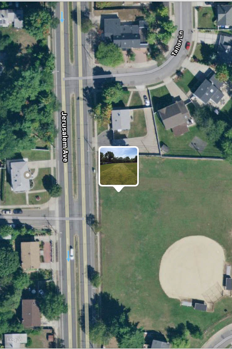 Looking East from Jerusalem Ave at the outfield of the Polaris Drive ball field.