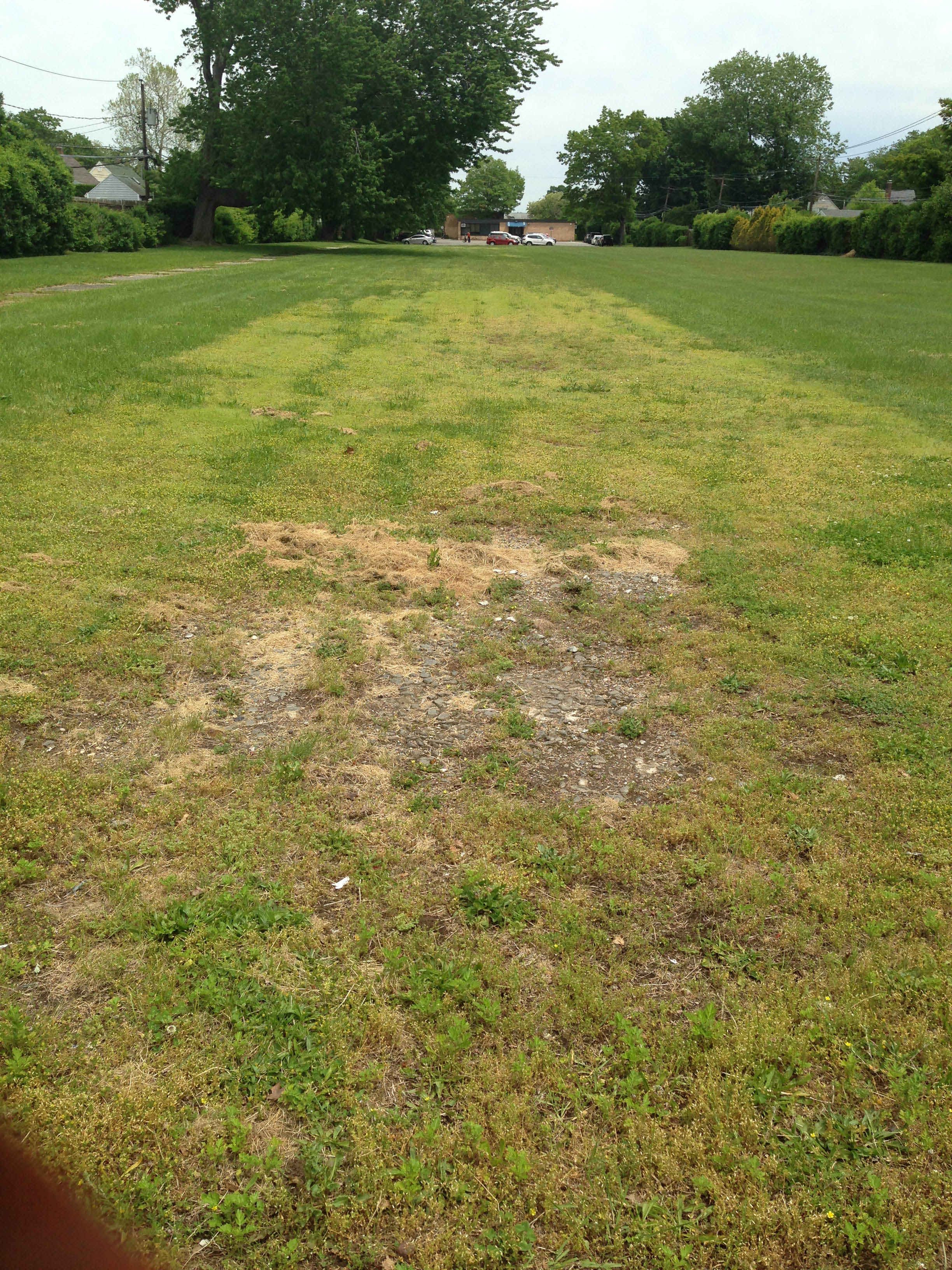 Polaris ball field in Levittown/Hempstead Plains/Island Trees. Similar footprints nearby in New Polaris field one block to the east, and at Laurel Lane elementary school 3? blocks to the west. I’m confident the Motor Parkway is just under that layer of grass, better preserved than at the school, where it’s slightly exposed and crumbling away. The 1908-10 Vanderbilt Cup Races once roared through here with thousands of spectators attending, flooding the roadsides and bridges for a close look. Those who could afford it were lucky to have a seat at the nearby grandstand, after walking through a muddy field from the train