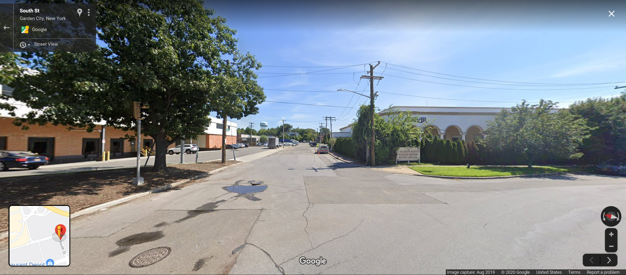 The picture, looking east was taken at the curve on South Street in garden City. The building on the right is still the Akbar catering facility. Judging by the cars most likely taken around 2004.