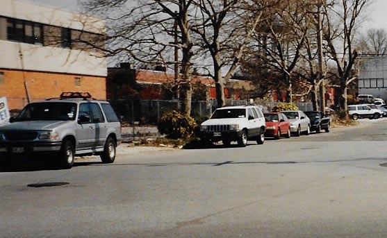 Al is standing on the sharp curve on South Street (looking East down the dead end extension) -at the southeast corner of Roosevelt Field. (At Al’s back directly behind him was a Benigans I’d often go to at that time.) Judging by the years of the closest identifiable vehicles (Ford Explorer, Jeep Cherokee, Honda Civic) I’d place this sometime around 1998.