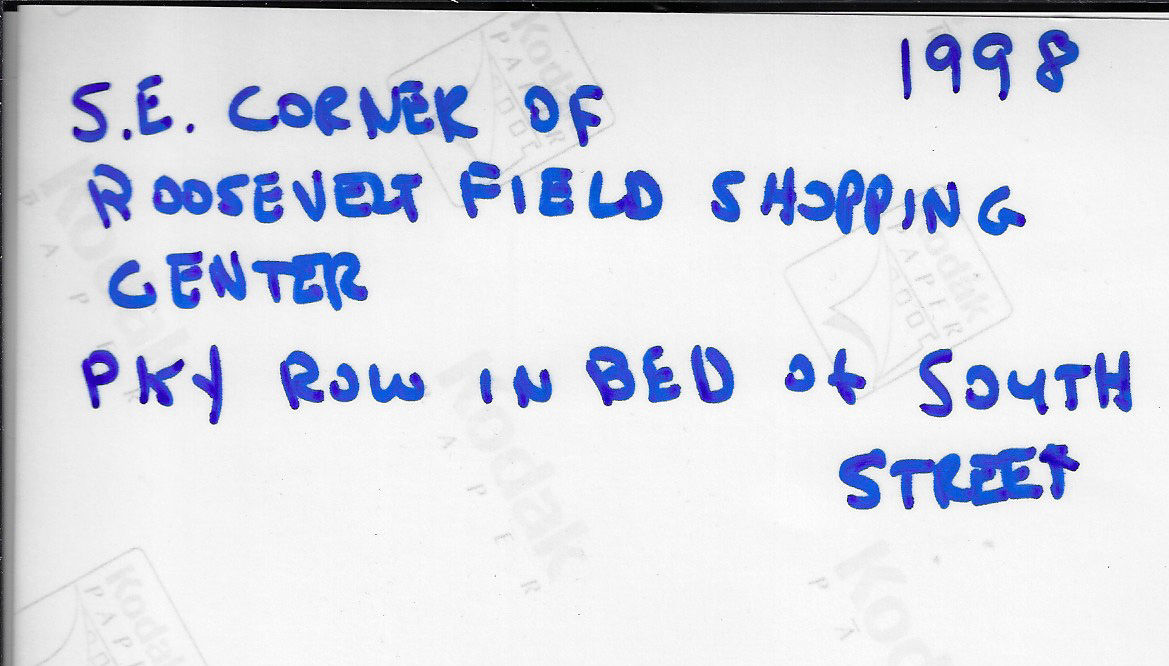 Great job guys identifying what today is called South St. Previously it called New Street when it was just that, and, even before that, referred to as Commercial Avenue. We almost didn’t lose that section of the Parkway. 1950 the County proposed to re-open the Parkway from Post Ave westward to north/south Ring Rd. on the west side of Roosevelt Field. It was the announcement of the developing of Roosevelt Field that prompted the County to make this statement. As we know it didn’t happen, did Moses step in (that early ?) and tell the County “whoa, I got plans for that property”, I could not find any evidence to support that speculation. In any event Hempstead town acquired the 100 foot wide ROW, built what was then called New St., on the most, roughly 60 foot portion, and sold off what was left to developers.