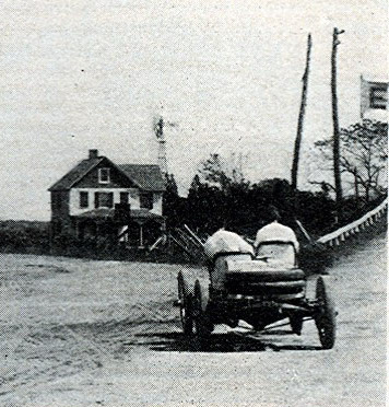 Old 16 Locomobile n the Massapequa-Hicksville Road Bridge during the 1908 Vanderbilt Cup Race on October 28, 1908. Note: The Massapequa Lodge and other buildings on the right may also be seen in the Mystery Foto.