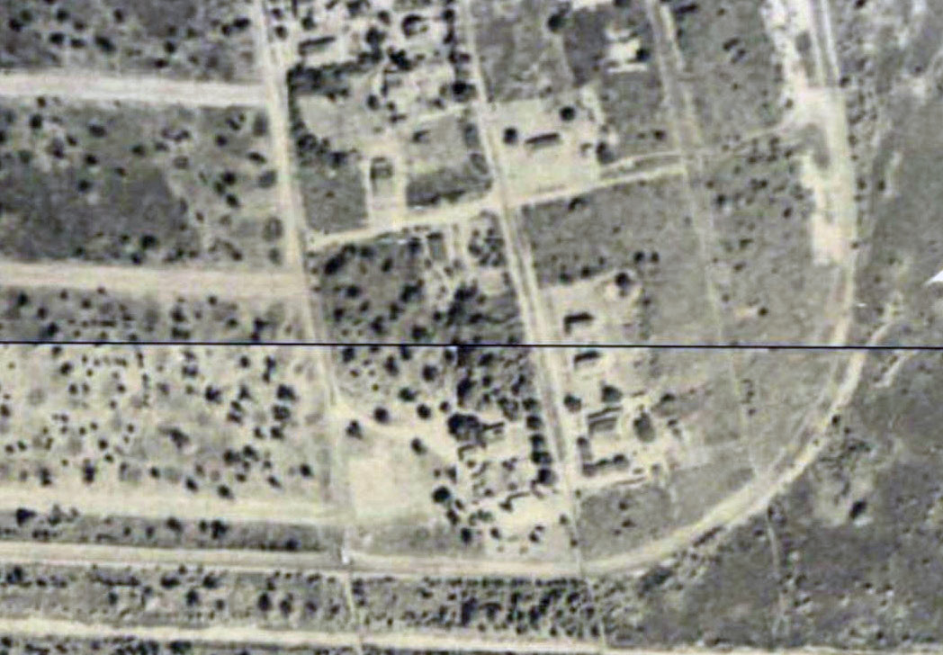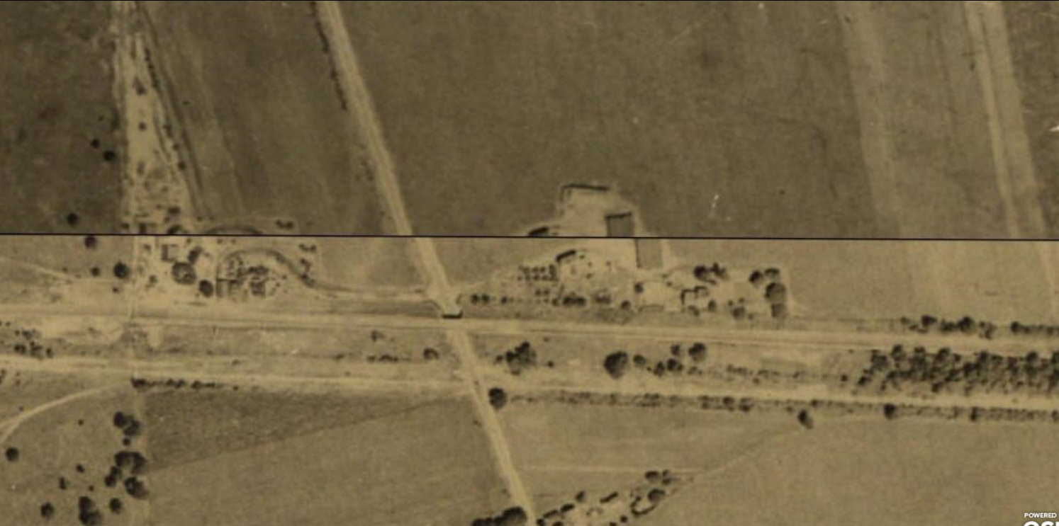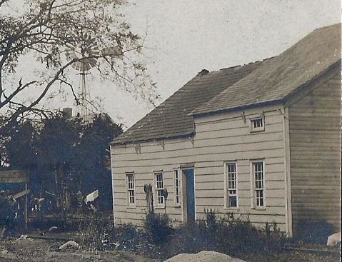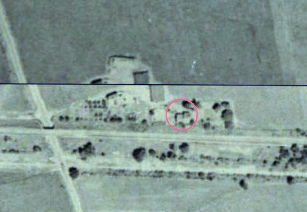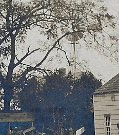 This two-level building can be seen in the below 1926 aerial. Note: The building and wind-powered water pump in the background.