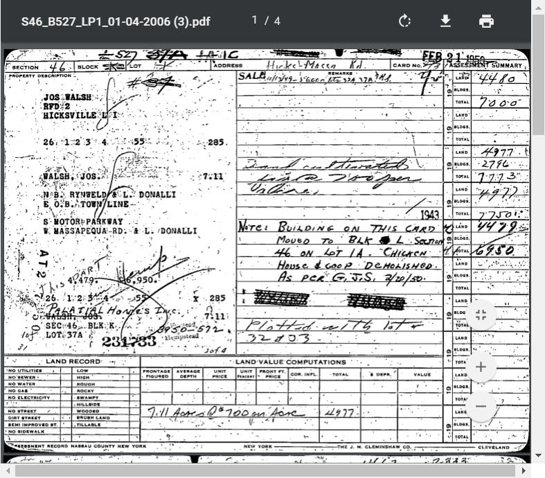 Back to answer my own question. After viewing the Nassau County LRV map and some residential info, the property that the former Joseph Walsh’s residence is relocated appears to be shared. The house is a business ( Fitness Doctor’s ), and the rest of the property is “Joe DiMaggio Landscape” ( likable name ). The prior location of Joseph Walsh’s residence is now shared by 2 homes on the s/side of Avoca Ave, besides his large acreage.