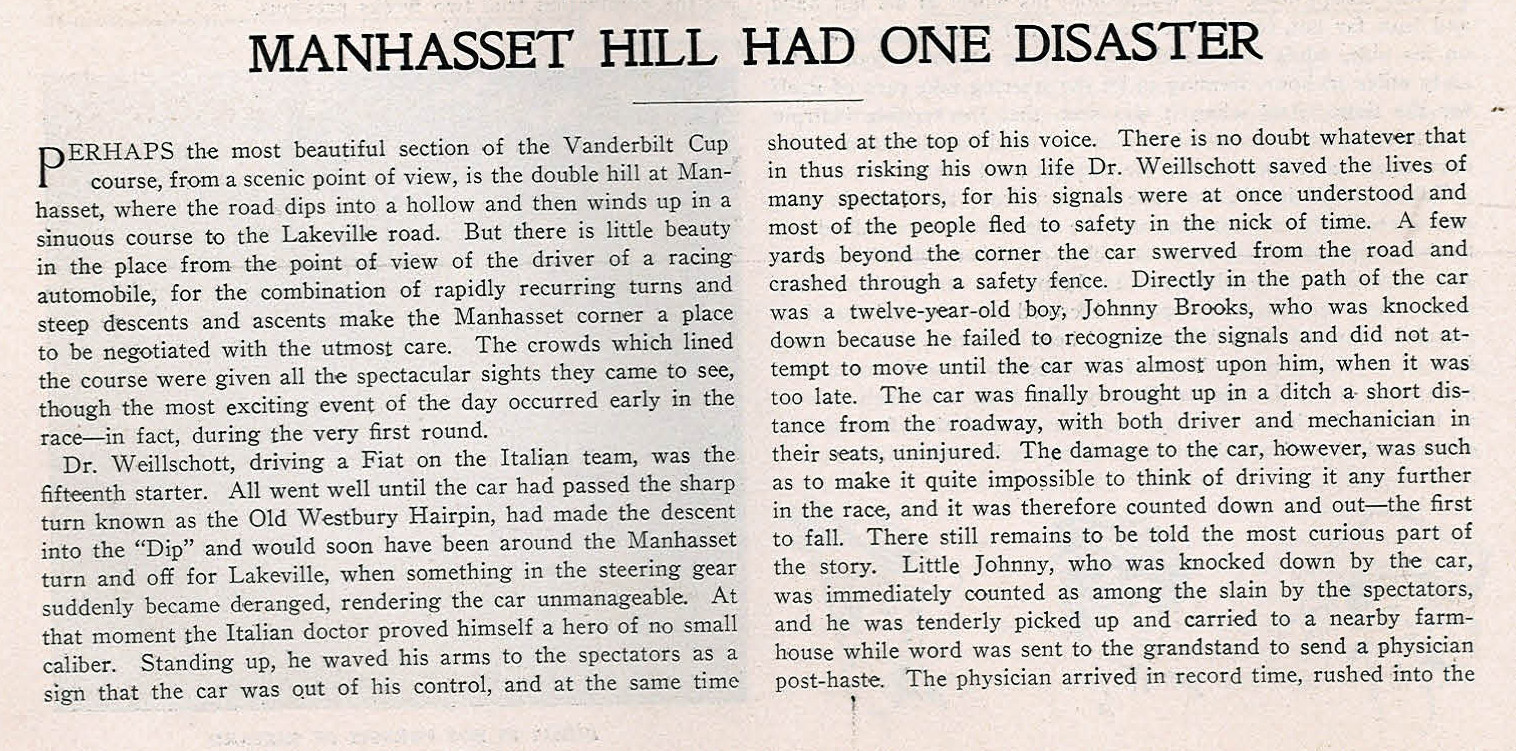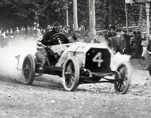 The Fiat #4 (120hp) driven by Vincenzo Lancia (crowd favorite) alongside mechanician Battista Ajassa during the 1906 Vanderbilt Cup Race on Long Island. This racer finished 2nd and taking a left turn where?. Hope to be back for more.