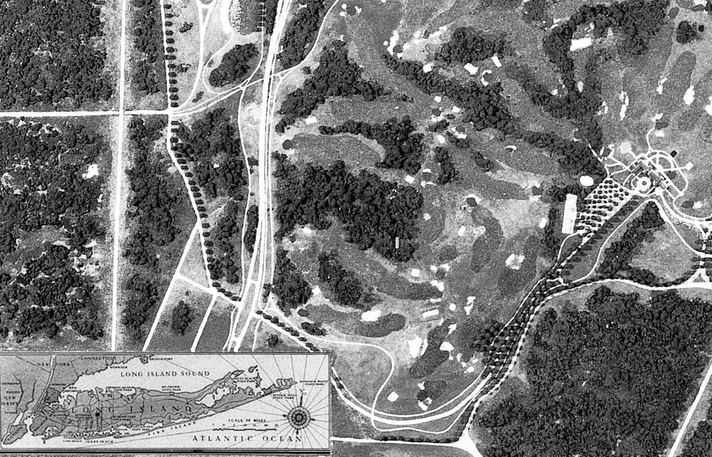 This looks to be a map of the Bethpage golf course with the LIMP on the left side of the photo pre-1959 when rt 135 construction started, likely in the 30’s.