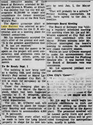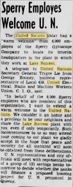 -United Nations original, temporary location, (then later, Sperry where my Grandfather was engineering, designing and building gyroscopes for flight systems.)
