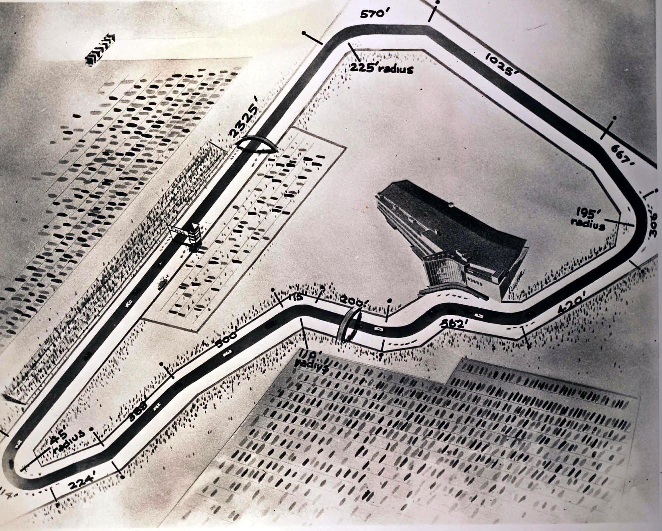 This is the redesigned course for the revived 1960 Vanderbuilt Cup races around the Roosevelt Raceway Horsetrack.