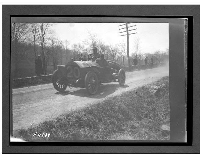 These photos were made during the Briarcliff Trophy race, held on April 24th 1908 on a 30 mile course in Westchester County, New York (track shown in the February issue of MoToR). The race was won by Louis Strang on Isotta-Fraschini. On the photos we see (from top to bottom): Bergdoll on Benz #20 (photo taken just before the Start-Finish line); Panhard & Levassor #15, driven by George Robertson; Thomas #12, driven by Montague Roberts; and finally Stearns #5, with driver Frank Leland. A large collection of Lazarnick photos of the Briarcliff races can be found in the digital collections of the Detroit Public Library (DPL).