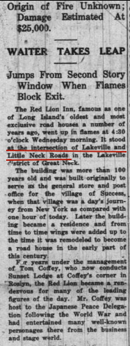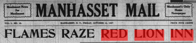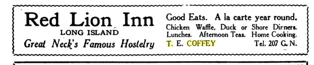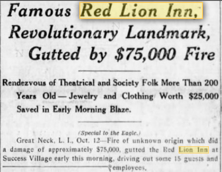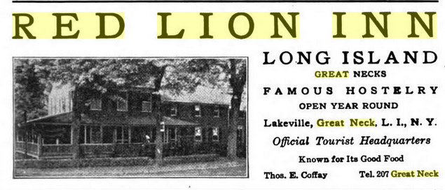 In the 1920s, the hotel was called the Red Lion Inn promoting that it was "Near the Great Neck Lodge of the Motor Parkway."