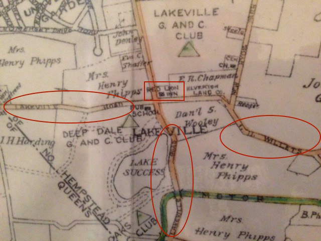 As seen in the 1906 Belcher-Hyde map, the Lakeville Inn (Hotel) was on the north-east corner of the intersection of Lakeville Road and I. U. Willets Road in Lakeville, now Lake Success.