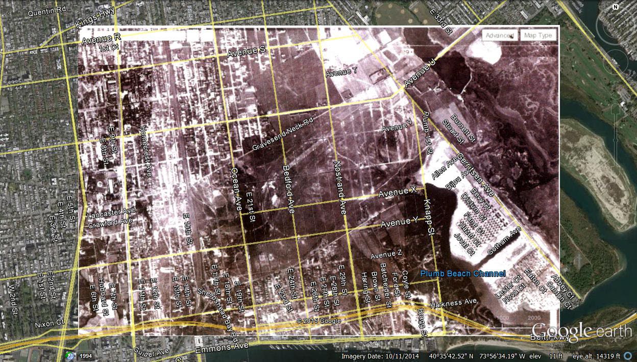 1924 aerial showing the outline of the Sheepstead Bay Speedway.