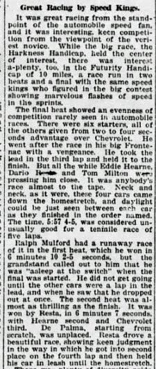 Thesefive driver would all later participate in the 100-mile Harkness Trophy Race held later in the day. The Harkness Race was won by Tommy Milton.