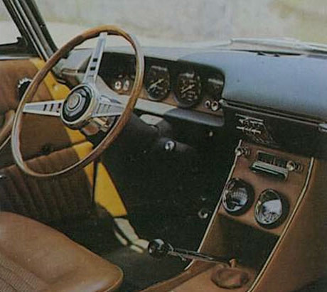 Steve: Note the Rally Pack gauges taken from the steering column and repurposed in the center console stack. Of course interior is Italian leather: