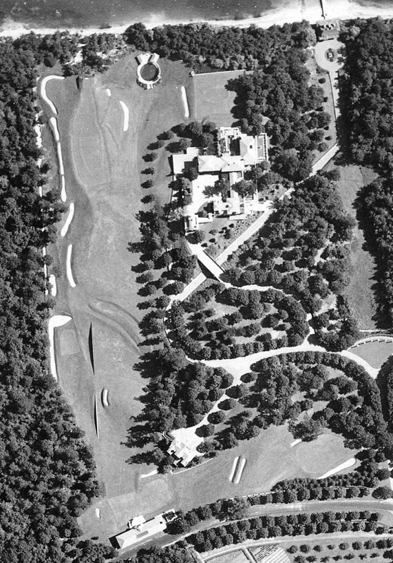 That would be the par 27, 9 hole private golf course on Willie K’s estate, Eagle’s Nest in Centerport, NY. Willie and freinds would tee off from the roof of the building in the foreground, looking at Long Island Sound. In 1999, Suffolk County restored the golf course as a public course (I don’t believe its still around however).