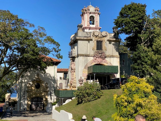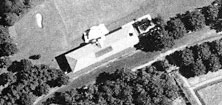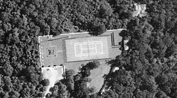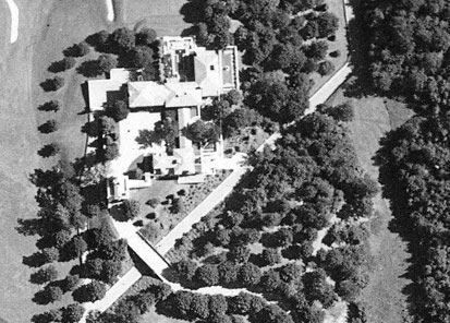 The first tee was on the roof of his Hall of Fishes, in the lower left of the close up. The main house is in the center, with the bridge that brought cars to the main entrance.