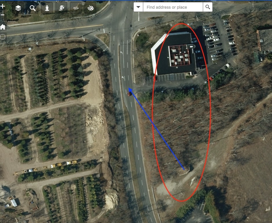 1st question is the path of the actual Motor Parkway as seen in the current photo… is the illustrated line up the driveway to the office building the actual entrance to the Meadowbrook Lodge, and isn’t the actual path of the Motor Parkway the service road between Micro Center and the Air Traffic Control (please clarify) and