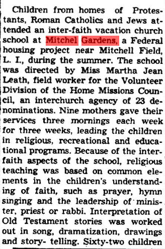 Here's a mention of Mitchel Gardens soon after it was created in 1941 that I ran across with respect to the children living there and where they would wind up going to school.