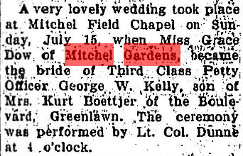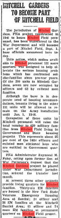 "Mitchel Gardens, a FHA project constructed in 1941 to house Mitchel Field personnel. has been transferred to the War Department and will become part of Mitchel Field on September 1 (1947)."